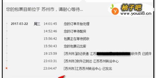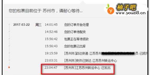 就如下图中,昨天晚上11点钟,从江苏苏州发出;也就是说,货已到苏州境内了。货正在苏州境内运输途中。若货到达下一个目的地,再进行扫描录入,上传到网上后,我们又知道了货到达那个地点。