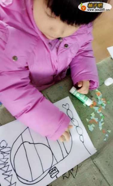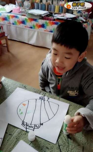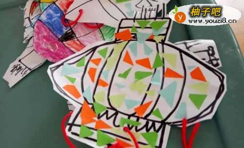 5第五步:会画好的灯笼尽量是大一些再请小朋友来粘贴色纸,锻炼小朋友的粘贴能力。
