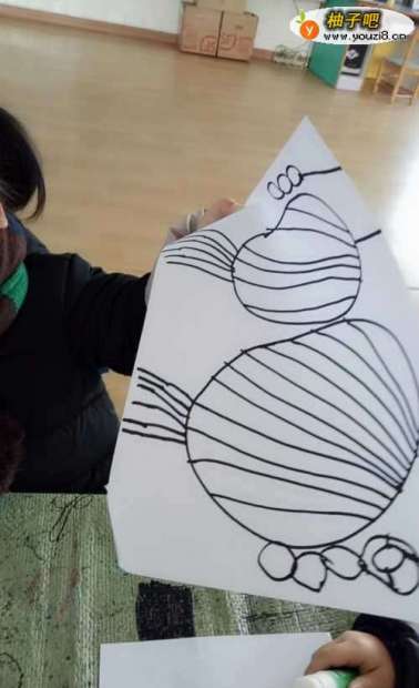 2第二步:说清楚,今天手工的内容是制作灯笼,然后再把灯笼的全部过程简单的说一说,然后请小朋友拿起大头笔进行绘画灯笼。