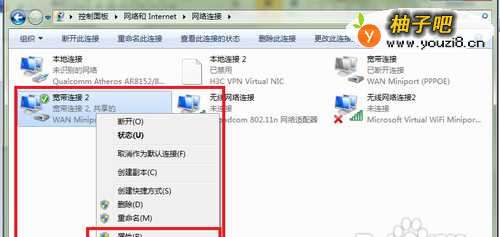 4右击想要使用的网络连接,依次选择“属性”、“共享”选项卡。