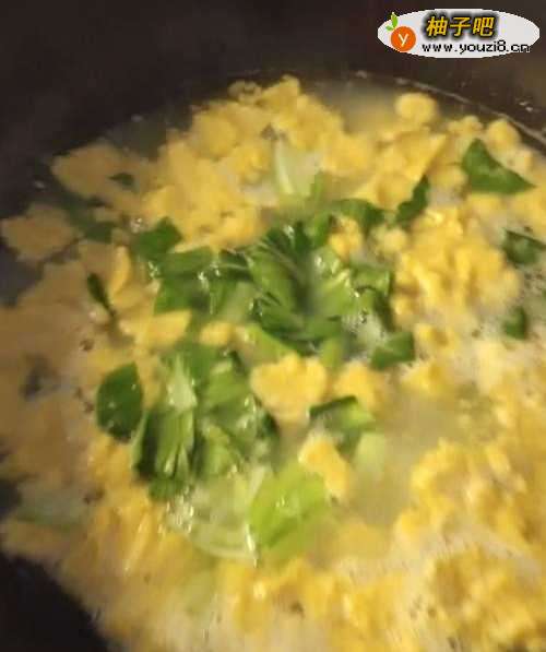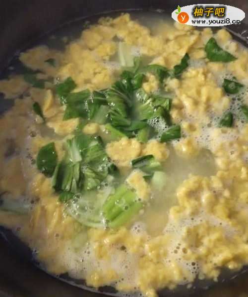 5烧半锅开水,把玉米团捏一片片放入锅里,加青菜煮4分钟加1茶勺食用盐搅拌均匀,倒入油条煮1分钟就可以了,因为油条本身有油所以不需要再加食用油了。