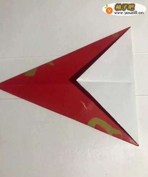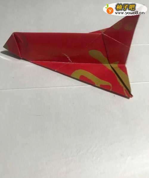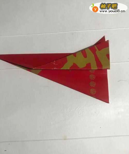 7第七步 向下折叠好尖角之后 再取开飞机的底部 把尖角握折进机身里面 然后再取开一下两边的翅膀 再整理一下 一架航空飞机模型就折叠完成了