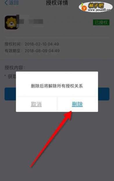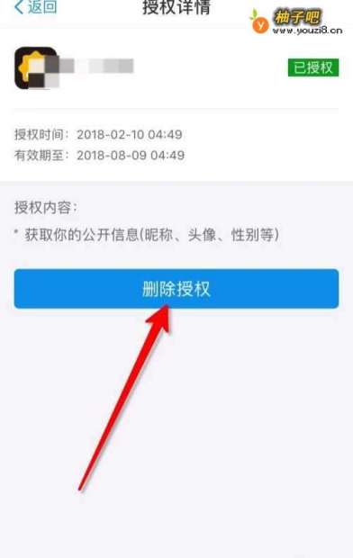 6在(授权详情)的界面,需要点击箭头指向的(删除授权)。