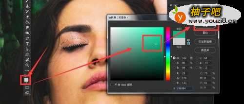 4点击前景色,在拾色器面板选择颜色后按确定