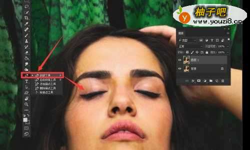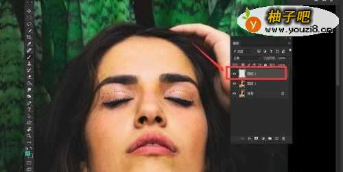 2用工具栏的【钢笔工具】把人物眼皮部分勾出来