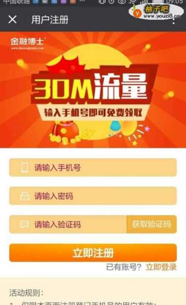 4打开之后出现如图界面,输入手机号就可免费得到30M流量