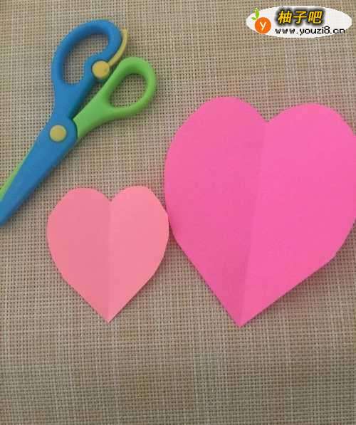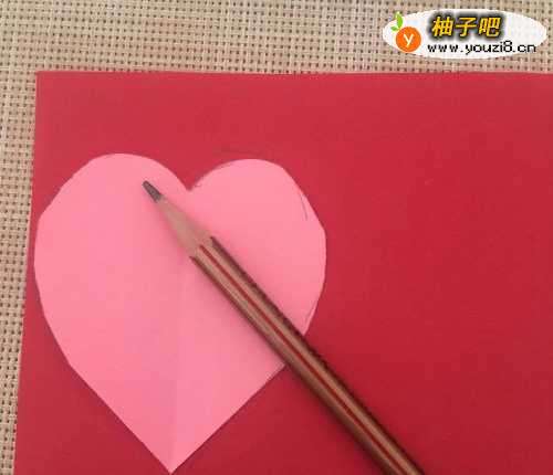 5然后将两个爱心交错叠放并用铅笔描一下,然后用剪刀剪下来,如下图所示。