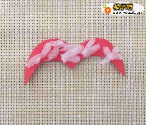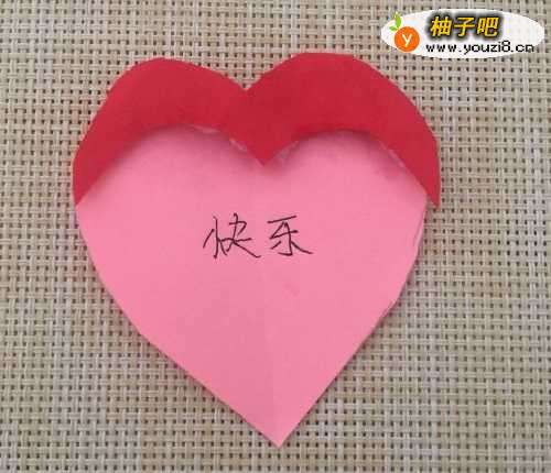 6最后用胶水把水果套网展上去,贴到爱心上,最后写上祝福语就可以了。