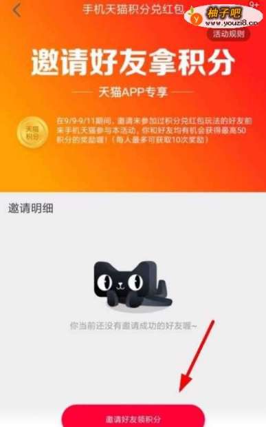 5当我们手机天猫积分不够的时候,我们可以选择下方的邀请好友拿积分来获得手机天猫的积分。