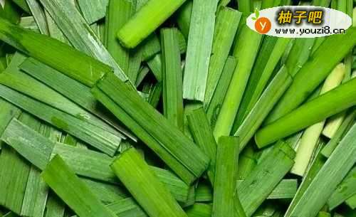 5最后倒入韭菜段,炒熟的鸡蛋,翻炒15秒。