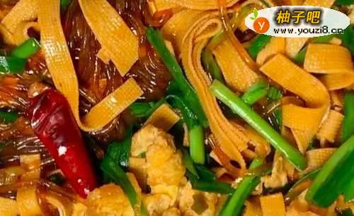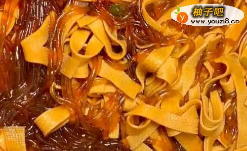 4再倒入切好的干豆腐条,继续炖2分钟,翻拌一下。