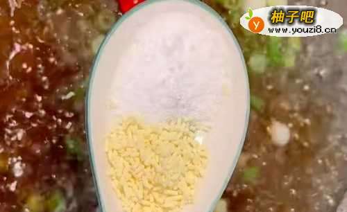 2然后起锅烧油,倒上适量食用油,油热倒入葱花、干辣椒,爆香。加适量清水、一勺生抽、盐和鸡精,一勺老抽,熬一下汤汁。