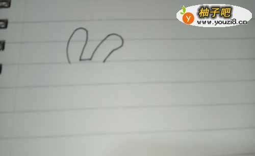 首先先画出兔子的耳朵,都是朝右边弯曲的,但是要注意的是,稍微有一点弧度即可。