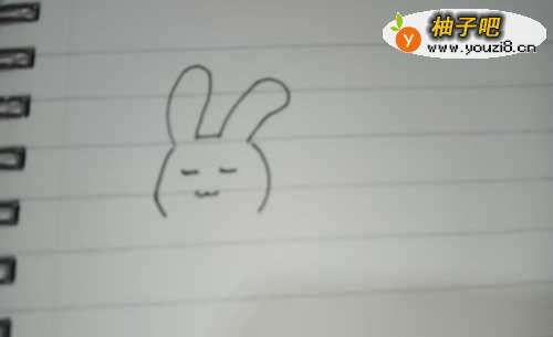 2随后可以画出和兔子圆圆的脸蛋,眼睛,以及可爱的嘴巴,你也可以画你自己喜欢的表情。