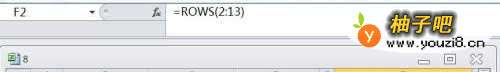 3在EXCEL中,打开【8.XLSX】后,选择【F2】单元格,在编辑栏中输入公式【=ROWS(2:13)】,如下图所示。
