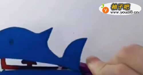 5固定好之后呢我们稍微试一试可以发现固定好之后呢,我们稍微试一试,可以发现大鲸鱼可以根据幼儿的手来进行移动这个时候呢,幼儿会非常的开心惊喜。