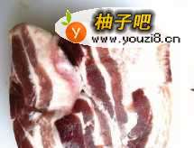 五花肉在冰箱里微微冰冻后比较好下刀切。
