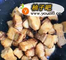 加入五花肉翻炒