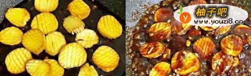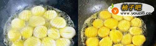 3锅中油热,放入杏鲍菇煎至金黄,盛出备用。