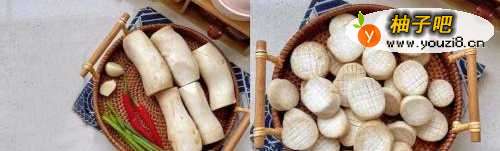 2杏鲍菇洗净,去头去尾,切小块,正反面改刀。