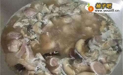 3加水、香菇水煮至芋头约8-9分熟,加入调味料。