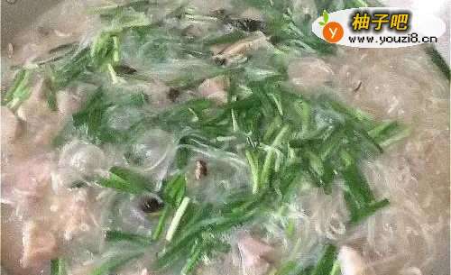 4加入米粉煮软,最后加入韭菜,转绿即可熄火起锅。