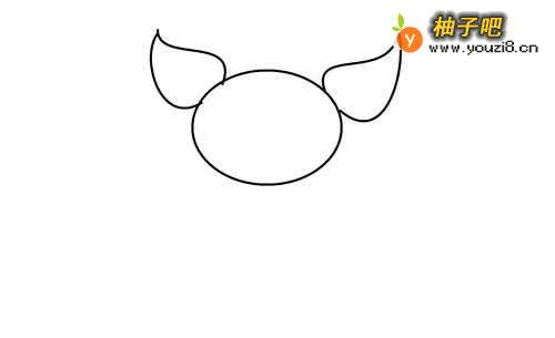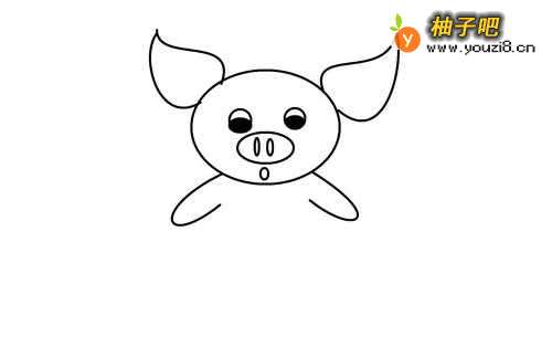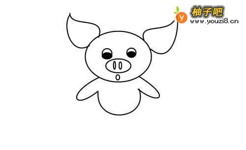 8在肚子上画一条弧线,耳朵的纹理画好,如图所示。