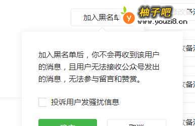 5如果我们遇到恶意用户的话,可以把用户加入黑名单,但是把用户加入黑名单后它将不会收到公众号发送的消息,更不能评论和点赞等。