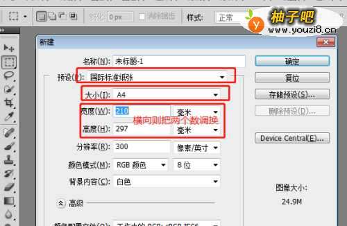 4比如我们需要一张A4纸大小,可以直接按Ctrl+N打开新建对话框,然后选择A4