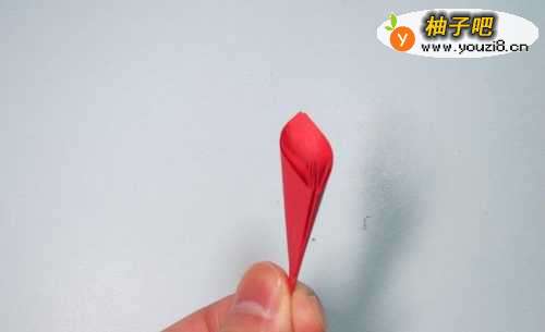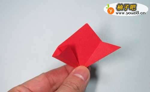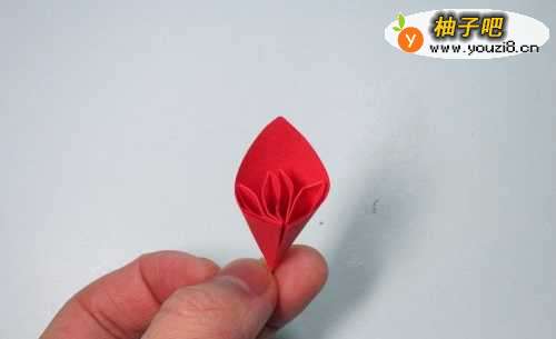 10第10步、将内侧的四个角都撑开一点点,就像图上这样。好了,一个花瓣就折好了。