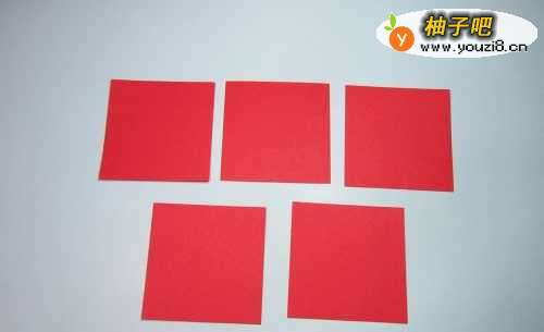 第1步、首先准备五张大小相同的小正方形纸,规格为7.5cmX7.5cm。