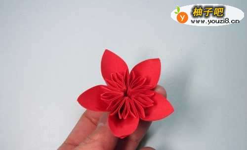14第14步、将剩余的花瓣依次对准并粘好,再调节下其形状和花蕊,这样,美丽的樱花就折好了,是不是非常的漂亮哦,喜欢的朋友可以多折些放在家里。也可以将多个这样的樱花拼在一起,将樱花的顶角对齐,花瓣之间粘好,组成一个樱花球,又是另外一个新的美丽的图形,大家有时间可以去试试。
