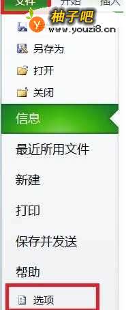 3在EXCEL中,打开【8.XLSX】后,点击左上角的【文件】→【选项】,如下图所示。