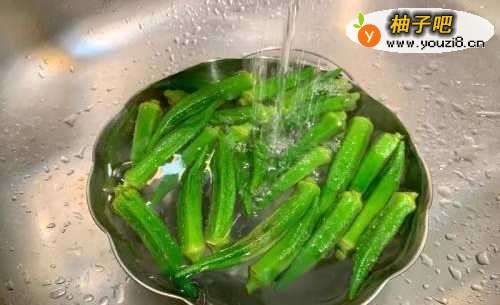 水烧热加入盐及油,秋葵用热水氽烫1分钟捞出入冷水冲凉,去头蒂再对剖备用