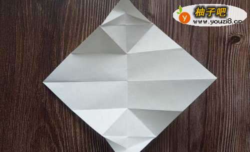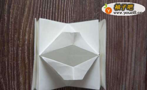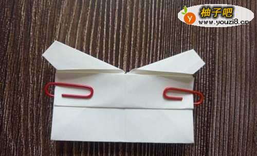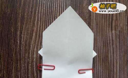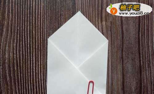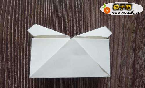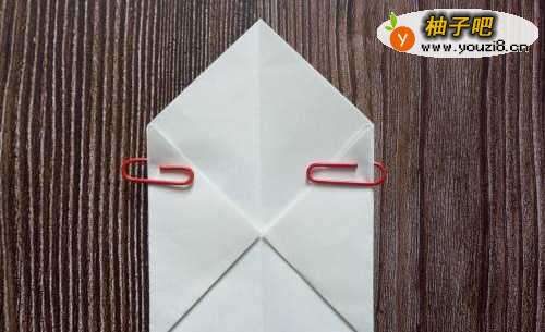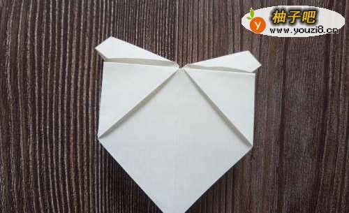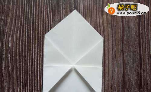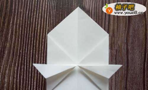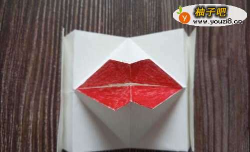 8展开,将两个角向后折叠,折叠的多,嘴唇会比较薄。