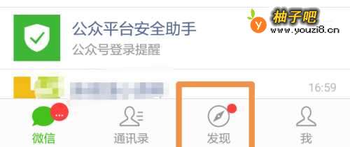 2或者点击微信首页下方的发现,在发现中选择摇一摇功能。