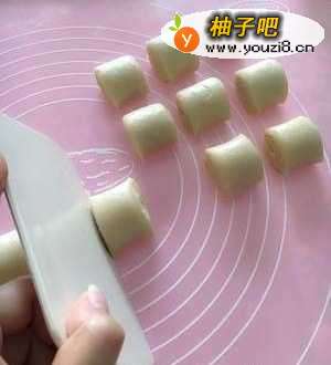 13收口捏紧朝下,然后用手轻轻按扁。(烤箱预热200度)
