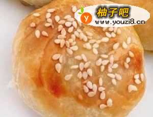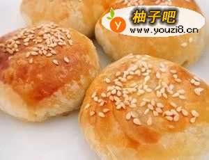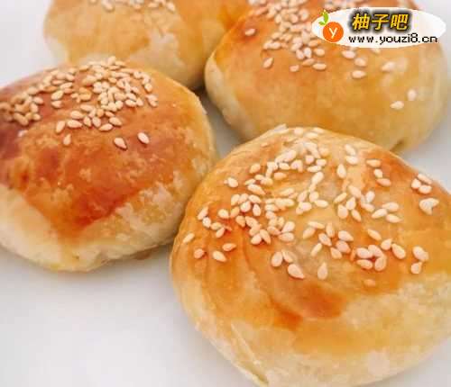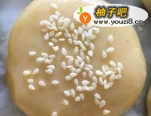 14所有都包好了之后,在饼皮表面刷一层蛋液,撒上白芝麻。