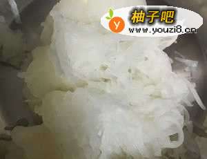 2接下来做油酥部分:面粉和猪油充分混合均匀揉成团即可。这一步如果怕手黏黏的难受的话其实可以用橡皮刮刀来完成。