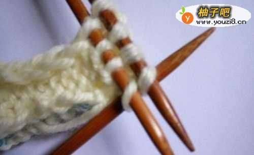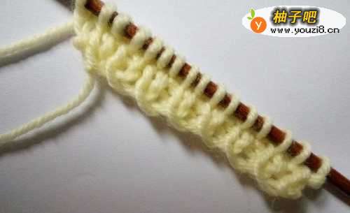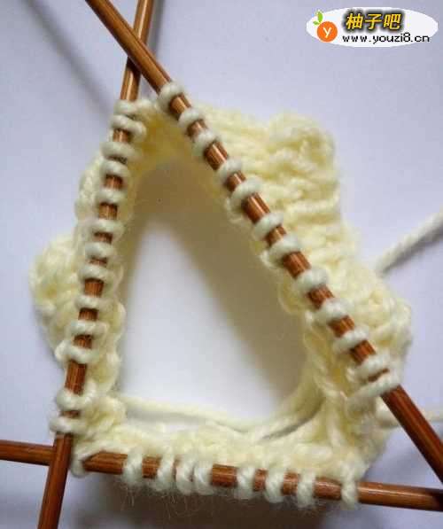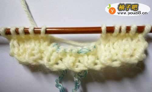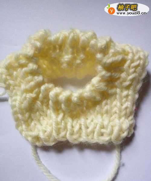 6然后在正面把领子处的线圈挑起织领子,织到需要的高度收针。完成。