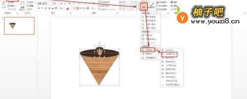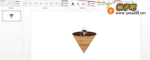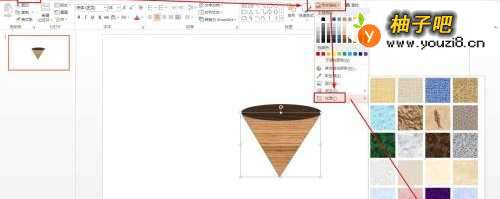 3选择V字形右击设置置于底层——开始——形状填充——纹理,选择栎木——同样设置椭圆纹理为胡桃。