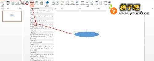插入——形状——基本形状——椭圆——画一个长扁形的椭圆。