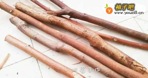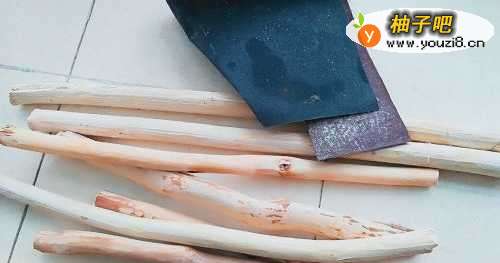 5浸泡几天后,发现之前树枝剥的皮不彻底,于是拿出来再刮~然后放进桶里倒入消毒液,继续浸泡继续剥掉残留的树皮(能看出来的,树皮颜色要深)