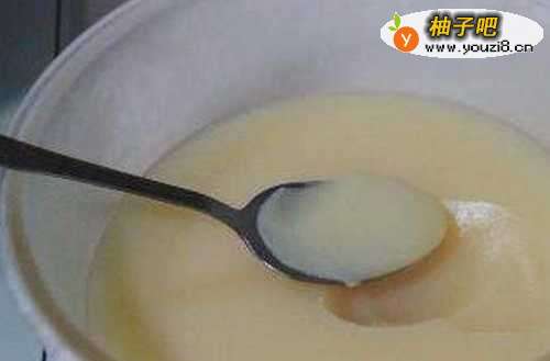 3做法第三小步,要用瓢搅拌至无颗粒物。