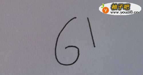 先在白纸上面写一个数字6出来,6的底端要稍微的丰满一下,这个是作为兔子的腹部用的。