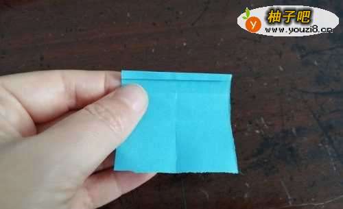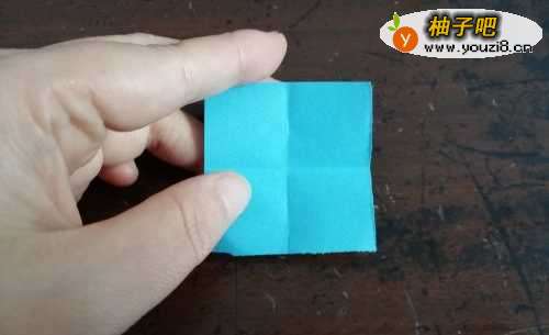首先把彩纸的中间折成十字型,如图所示。