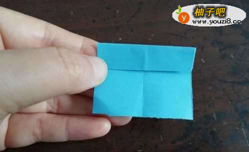 2把上边向着中间的折痕对折,打开后,继续把上边向着刚折的折痕对折。