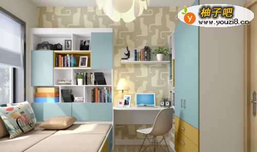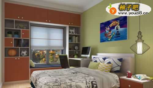 技巧四:巧设计榻榻米飘窗飘窗设计是非常实用的,当沙发时宽敞舒适,下面还暗藏着玩具收纳箱,玩具杂物有安身之处了。儿童房中就该备上这样的一款飘窗,再围绕飘窗的位置,把整个墙面做成收纳柜,既实用又美观。