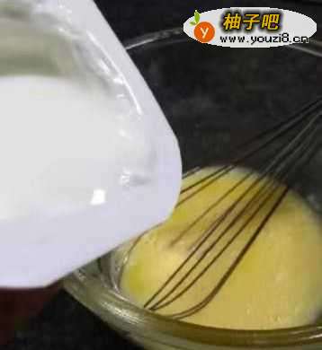 鸡蛋打散,加入白糖酸奶搅拌均匀。