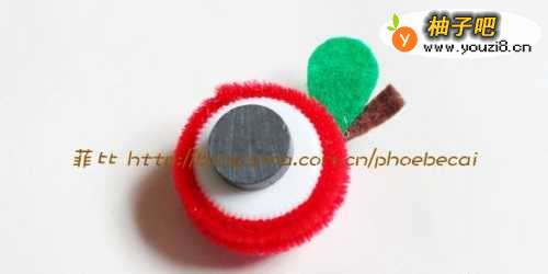 11最后在苹果背面粘上磁铁。活泼又可爱的的冰箱贴完成。